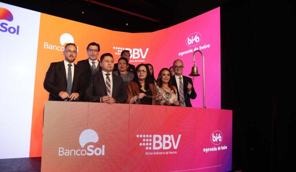 En el acto simbólico de toque de campana en La Paz, participaron representantes clave del sistema financiero: Ivette Espinoza, directora general ejecutiva de la Autoridad de Supervisión del Sistema Financiero (ASFI); Moisés Murillo, gerente de inversiones de la Gestora Pública de la Seguridad Social de Largo Plazo; Hugo Morató, presidente, y Pablo Irusta, gerente general, de la Bolsa Boliviana de Valores, quienes destacaron la relevancia y el impacto de esta operación para promover la inversión con impacto social y fortalecer un sistema financiero inclusivo y sostenible en Bolivia.