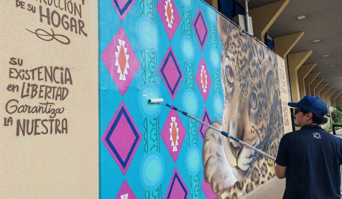 “Para nuestro equipo, pintar este mural fue una forma de aportar desde el arte a un mensaje que es urgente. Cada escena que plasmamos busca que la gente se acerque, mire con atención y entienda que el jaguar necesita de todos para seguir existiendo en la Amazonía”, señala Leys Daza, artista del Colectivo de Artistas Tigre-Gente, que elaboró el mural de Cobija.