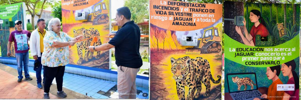 En el norte del país, en Cobija, un mural educativo y compuesto por ocho piezas interconectadas, es el llamado constante a impulsar la conservación del jaguar, el felino que tiene un rol ecológico central en diferentes ecosistemas y que enfrenta serios problemas para su supervivencia en la Amazonía.