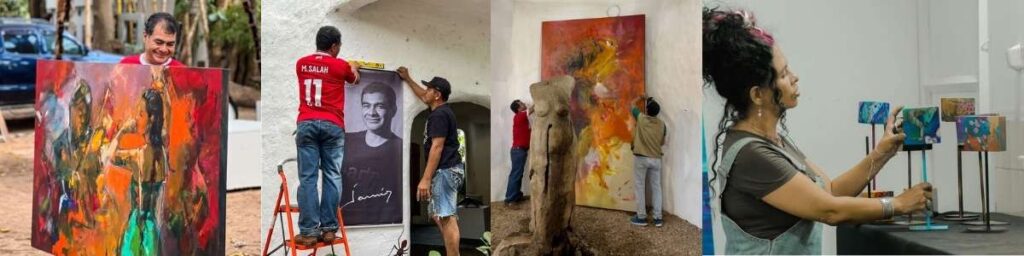 Además de la exposición, el evento contará con actividades para niñas, niños y familias, talleres guiados por artistas como Magenta Murillo, pintura en vivo acompañada por chelos en vivo, y performances conjuntas de artistas como Leoni, Yamir Johansson y Ejti Stih. Otro de los espacios, el de los relojes en madera y con diversas formas, hace alusión al tiempo.