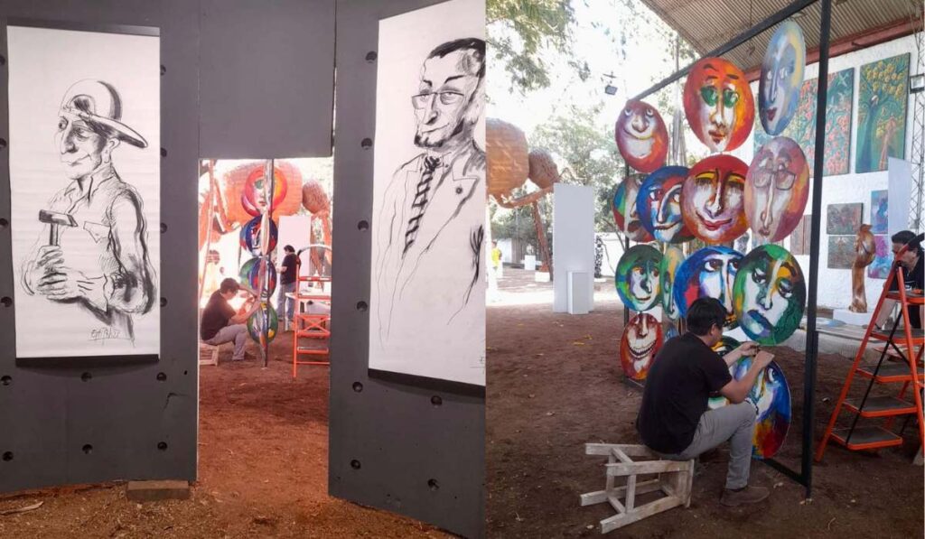 La curaduría de Juan Bustillos, artista y gestor cultural de amplia trayectoria, ofrece un recorrido por diversas técnicas. La escultura tiene un lugar especial con obras en madera, piedra, acero y bronce, muchas de ellas realizadas con materiales recuperados de la ciudad.