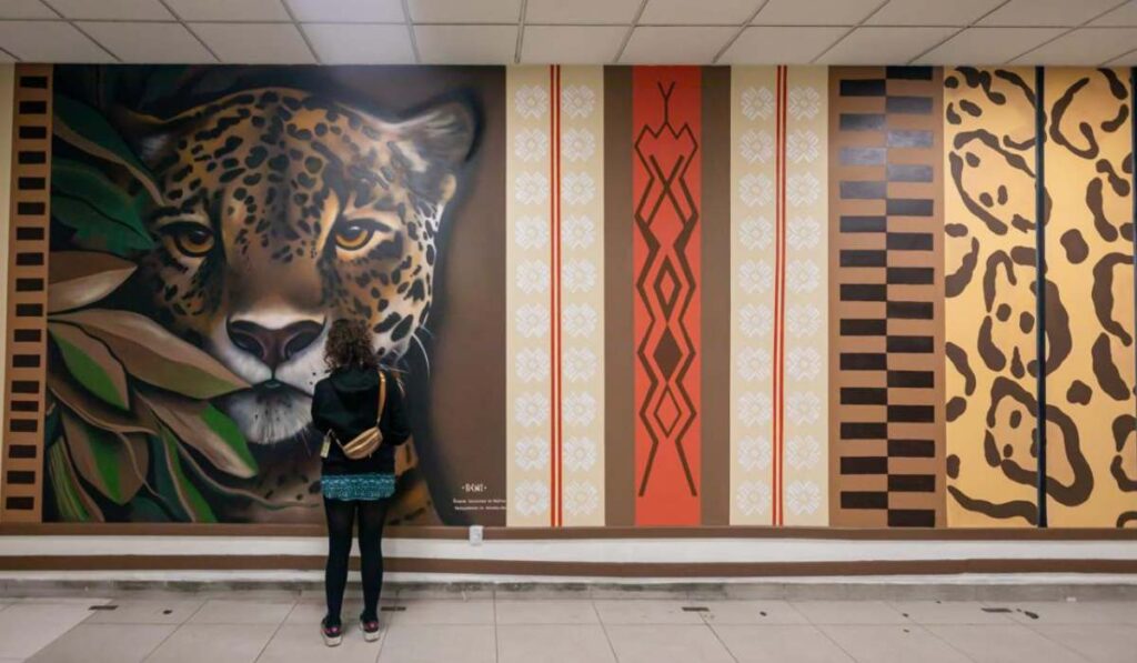 El mismo espíritu se proyectará en dos de los aeropuertos más importantes del país, con murales que llaman a evitar el tráfico de fauna silvestre, una de las mayores amenazas para el jaguar. En El Alto, los viajeros ya pueden ver el primero de dos Murales de Resistencia, una acción artística colectiva creada en honor al Día Internacional del Jaguar, y que nacen del esfuerzo conjunto de Tigre Gente, Pachamama Sabia, Alas Chiquitanas Voluntarios y Revista Nómadas, unidos por una misma causa: proteger al jaguar, evitando y denunciando el tráfico ilegal de fauna silvestre.