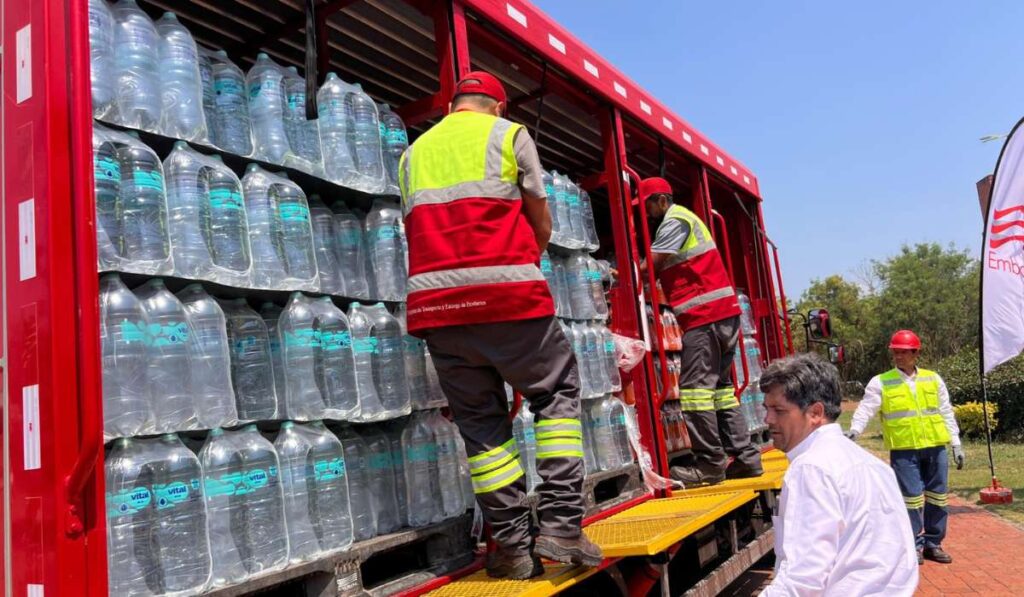 En detalle, Embol entregó 10 tanques de agua de 1.000 litros cada uno, 150 Big Bags con capacidad de 1.000 kilos, los cuales son empleados para carga de agua en helicópteros y llegar a zonas de difícil acceso, además de 150 bolsas de 150 kilos para apoyar en tareas logísticas.