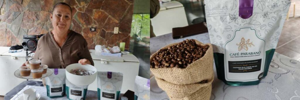 El café de El Salao se comercializa bajo la marca «Parabanó». Toda la familia trabaja en el proyecto: doña Mirtha Yabeta ofrece el helado y los bombones que se preparan en el lugar.