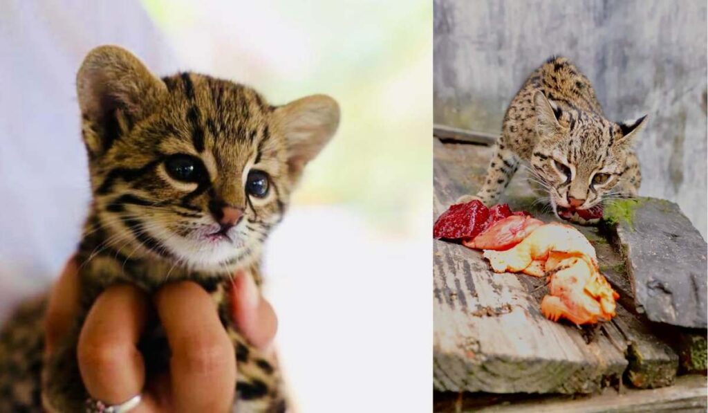 Jaqueline Bazán, veterinaria de la Uagrm, explicó que el estado de salud de la tigrilla era extremadamente delicado en los inicios del proceso de rescate, debido a la falta de calostro y leche materna.