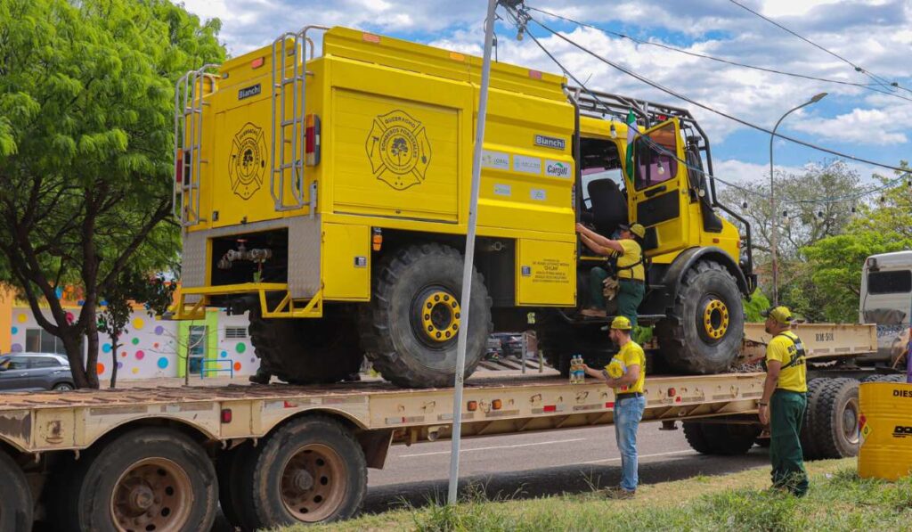 La Gobernación de Santa Cruz, este martes dispuso el traslado de un carro bombero de Quebrachos a las zonas afectadas, así como un lote de víveres destinados a las ollas comunes del lugar y medicamentos para los voluntarios que se encuentran en primera línea.