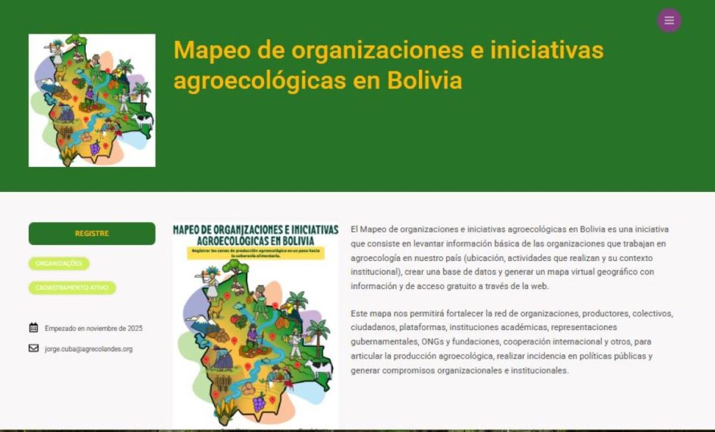 El Mapeo se realizará a través de la plataforma Agroecología Em Rede de Brasil, un software que permite a redes agroecológicas identificarse y compartir experiencias, promover el intercambio de saberes y fortalecer el movimiento agroecológico regional, conectando a productores, comunidades, investigadores y organizaciones en América Latina.