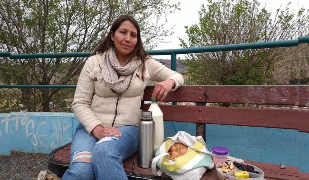 Zoraida me lleva a comprar huevos a una casa con alrededor de 30 gallinas. Los recibe en una bolsa de tela llena de cascarilla de arroz, una técnica que aprendió en Los Yungas para transportar huevos sin que se golpeen.