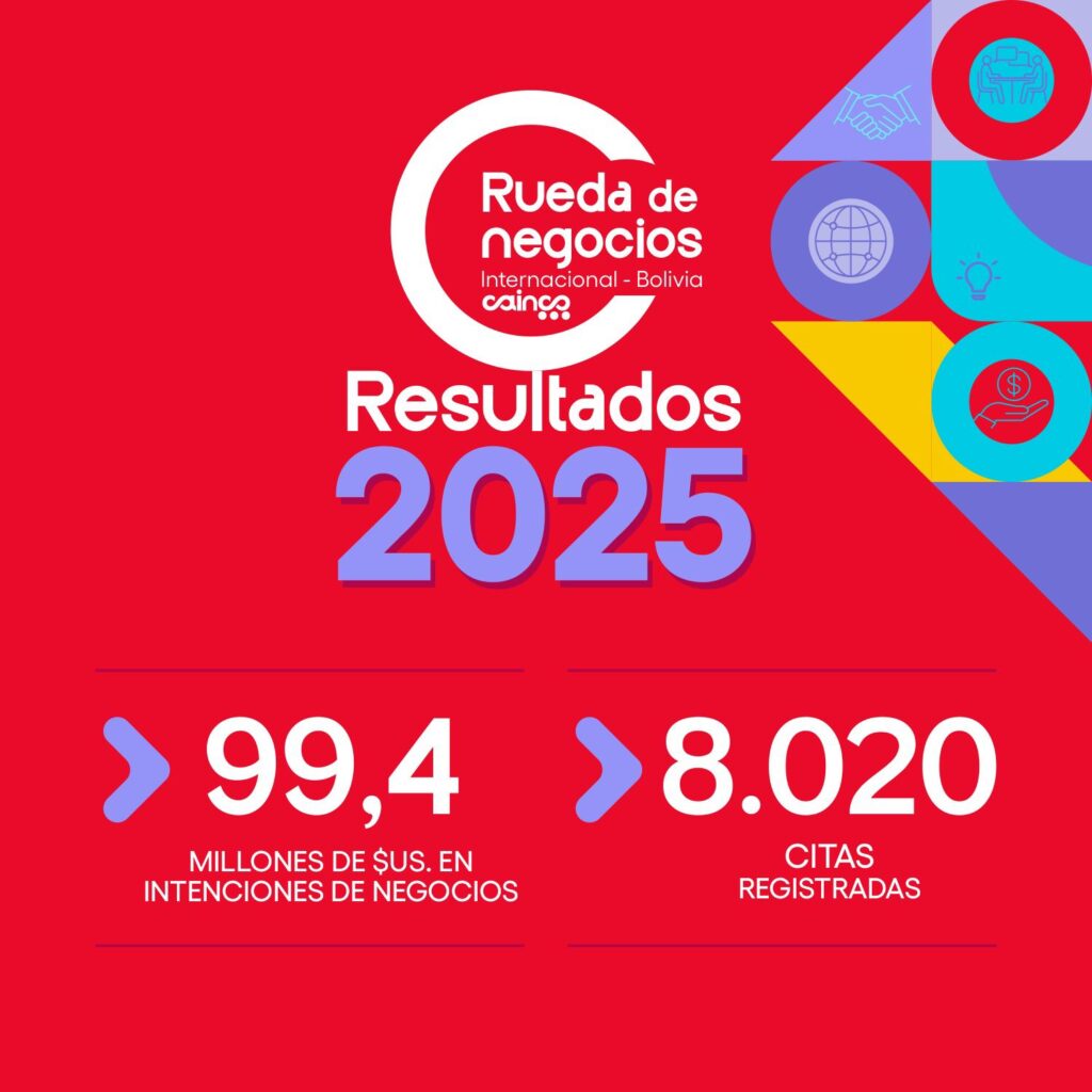 La 34.ª Rueda de Negocios Internacional Bolivia 2025 cerró con 99,4 millones de dólares en intenciones de negocio y 8.020 reuniones empresariales desarrolladas durante los tres días en los que más de 600 empresas mostraron sus productos y servicios en busca de alianzas y nuevos mercados.