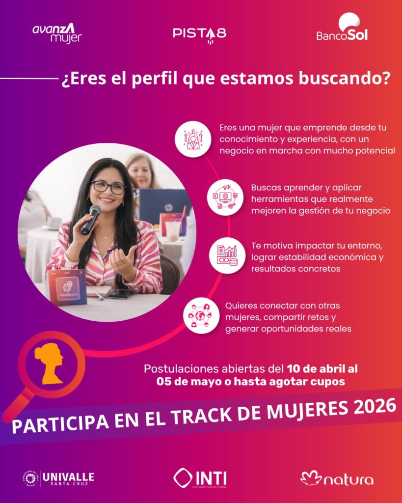 El estudio de innovación Pista 8 lanzó la convocatoria para una nueva edición de Track de Mujeres, un programa híbrido de formación y fortalecimiento dirigido a mujeres emprendedoras que ya tienen un negocio en marcha y buscan fortalecerlo para impulsar su crecimiento económico y profesional.