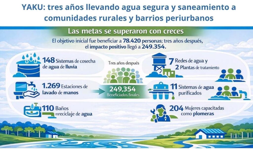 El proyecto Yaku llega a su final pero deja las bases para buscar alianzas con municipios, gobernaciones y el Gobierno central, además de aportes privados, demostrando el impacto que las soluciones comunitarias pueden tener para garantizar el acceso al agua y mejorar las condiciones de vida de amplios sectores de la población.